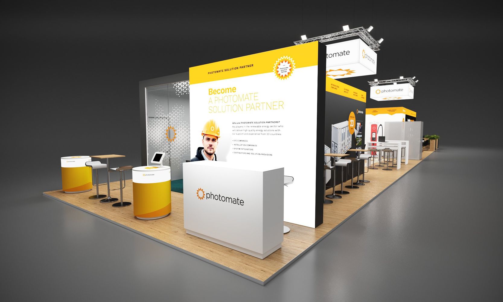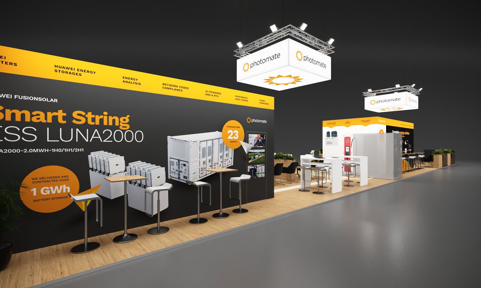 Щандът на Photomate ще откриете в зала C1, №230, в непосредствена близост до изложбената площ на Huawei. Ние ще представим нашето портфолио от високотехнологични решения: системи за управление на енергията, AC & DC зарядни станции за електромобили, термопомпи, както и интегрирани решения за ефективно производство, съхранение и използване на енергия.